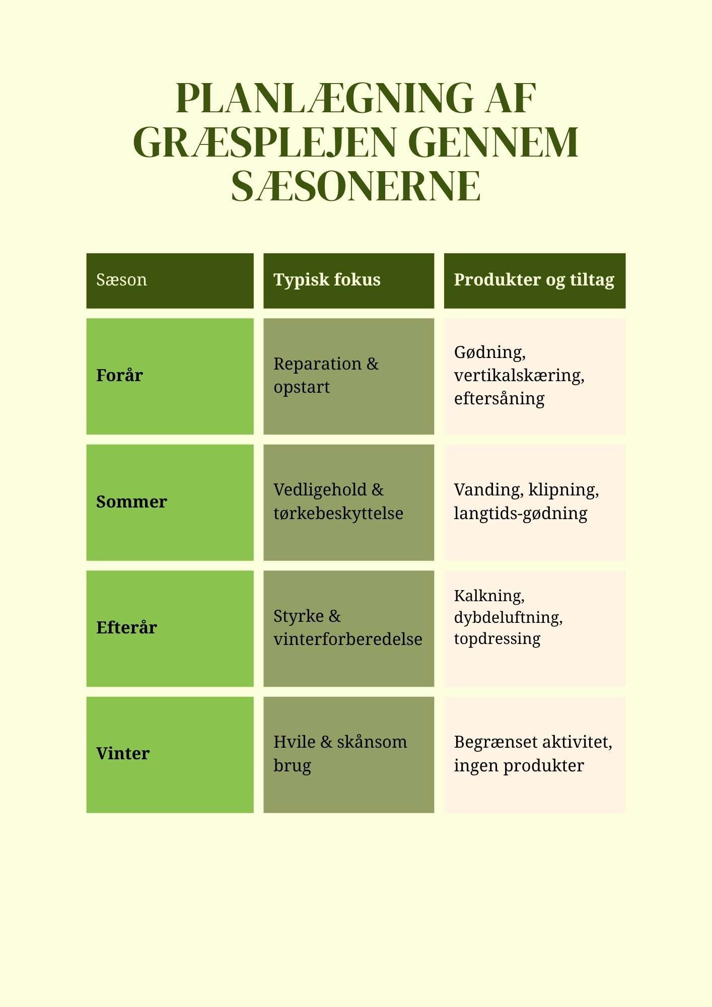 Uanset om du ønsker en elegant parkplæne, en klassisk græsplæne eller et slidstærkt underlag til sport og leg eller festlige stunder, er vejen banet for succes, hvis der tænkes helhedsorienteret fra start.