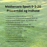 - Mastercare Sport 5-3-20 er suveræn til boldbaner, stadions, tees, fairways men også til private haver, hvor man ønsker den mest lækre græsplæne til blandt andet leg og boldspil