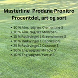 - Masterline Prodana Pronitro indeholder langtidsvirkende startgødning. Du får altså kvalitetsgræsfrø indkapslet i startgødning.